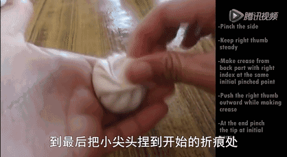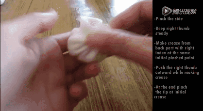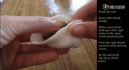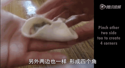 另一只手从左到右将饺子两侧