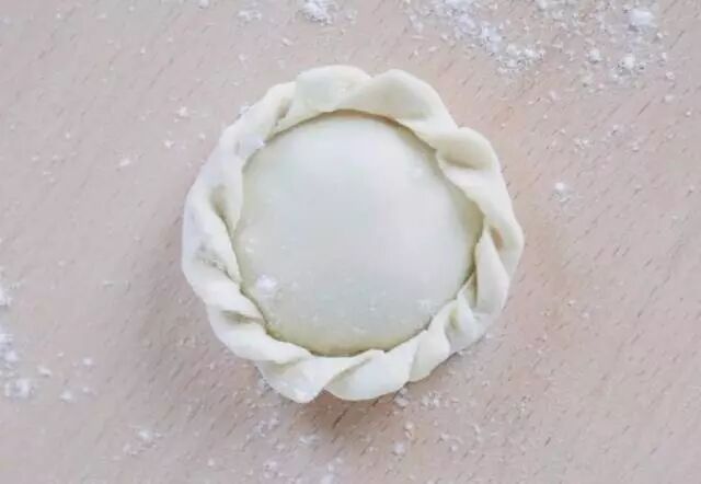 把饺子皮从中部压实