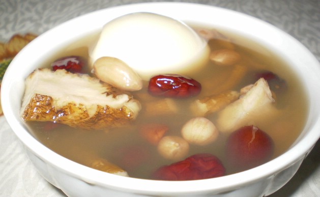 材料:当归1两,圆肉1两,黑豆2两,红枣8粒,腐竹2两,姜2片