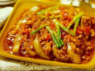 基本材料 肉泥20克、茄子200克、香葱10克、生姜10克。